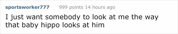 “我也想有人用像这只河马宝宝看着这个男人的眼神那样看着我啊!”